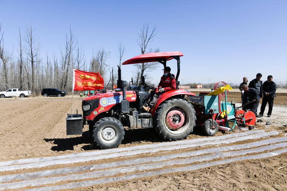 “2026年春耕春播正式開始!”號(hào)令一響,田野上的大型農(nóng)機(jī)具同步轟鳴作業(yè),車頭上的彩旗在田埂間迎風(fēng)翻飛。旋耕機(jī)駛過,土地被平整壓實(shí);播種機(jī)來回穿梭,一壟壟地膜整齊鋪開,一行行種子精準(zhǔn)入土。在給機(jī)器更換地膜、補(bǔ)充肥料的間隙,種植戶們圍在一旁邊研究著機(jī)器作業(yè)原理邊感慨:“施肥、鋪地膜、下種三道工序一次完成,這機(jī)器的效率就是高。”